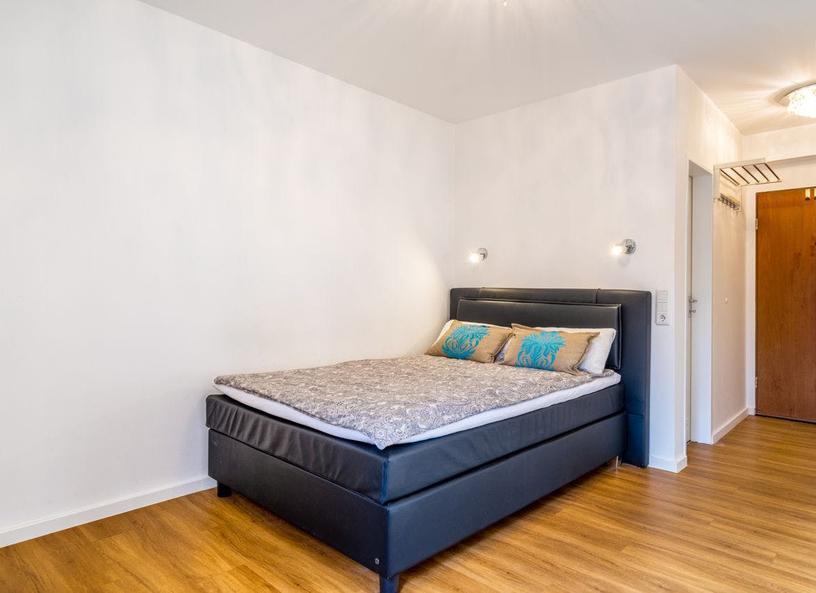 Ideal ist diese Wohnung für Pendler, für Firmen, für Berater oder Angestellte aus der Innenstadt, sowie Studenten geeignet. Ein kostenpflichtiger regelmäßiger Reinigungsdienst kann zusätzlich bereit gestellt werden. Zu dem Apartment zählt ein schönes Zimmer. Das Apartment ist barrierefrei und bequem über einen Fahrstuhl zu erreichen. Die Wohnung ist voll ausgestattet, Sie können "kofferfertig" einziehen. - EBK, mit Herd, Mikrowelle, Wasserkocher, Kaffeemaschine, Besteck und Geschirr - Bett (140x200) - TV - Internet - Schrank - Kommode - Bügeleisen und Bügelmatte - Wäschestände - Esstisch und 2 Stühle - Arbeitstisch und Stuhl - Trolli / Ablage - Kleiderhaken und Ablage für Koffer Die Wohnung ist in einem sehr guten Zustand. Das Bad wurde 2022...