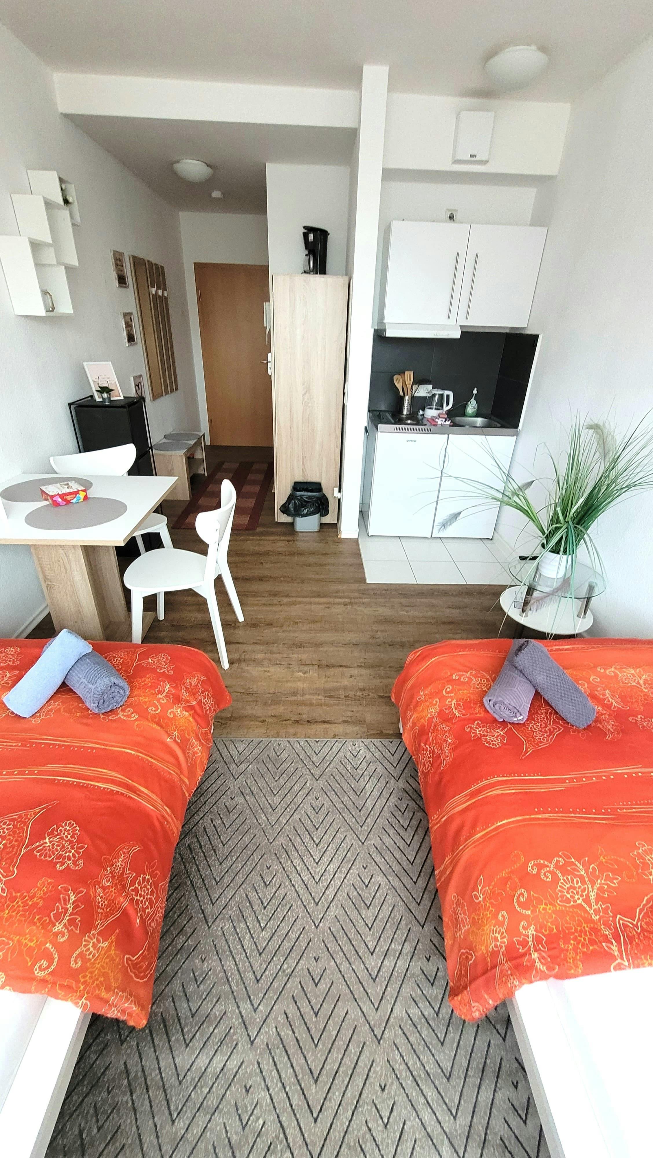 This fully furnished apartment is ideal for one person and offers everything needed for a comfortable mid-term stay. It is located in a very central area, just 5 minutes from the main train station and within walking distance to Goethe University and the university hospital. Shops, cafés, and public transport are all close by. The apartment is part of a well-maintained building with respectful long-term tenants. Utilities (electricity, internet, etc.) are included in the rent. A shared laundry room and a rooftop terrace are also available for use. The apartment is rented out for temporary stays (minimum a few months).